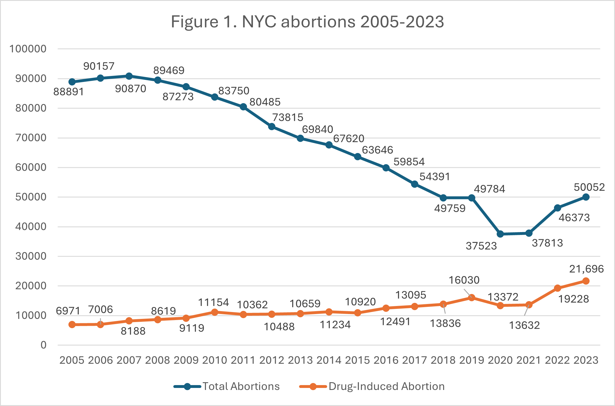 New York City’s 2023 abortion statistics were published online as part of the city’s vital statistics report in early 2026. This data does not include the number of mail-order abortion drugs prescribed by licensed abortion providers in other states to New York City residents or the number of self-managed abortions performed by women outside of the healthcare system. It is unclear if New York City’s reported total includes the number of mail-order abortion drugs prescribed by licensed abortion providers in New York.